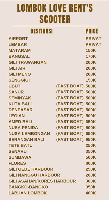 Need transportation in Lombok for tourism, business needs or airport pickup, contact Lombok Love Rent's Scooter for easier and safer car rental.